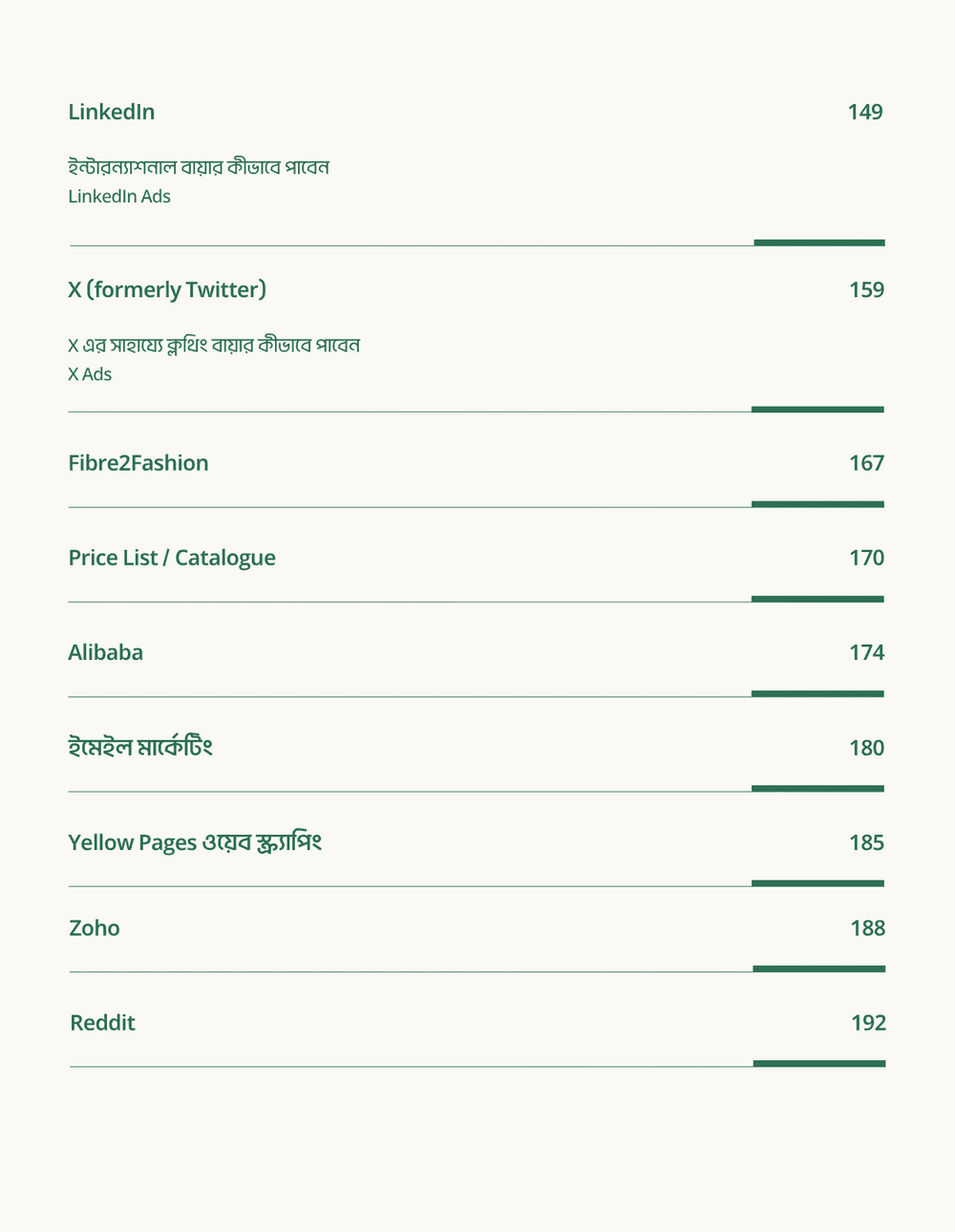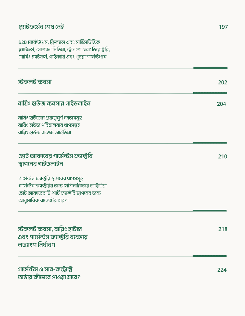 বইটিতে দেশি এবং বিদেশি উভয় ধরনের কাস্টমার বা বায়ার পাওয়ার জন্য বিস্তারিত ও পরীক্ষিত কৌশল আলোচনা করা হয়েছে। Facebook, WhatsApp থেকে শুরু করে Alibaba, LinkedIn পর্যন্ত সব প্ল্যাটফর্মই কভার করা হয়েছে।